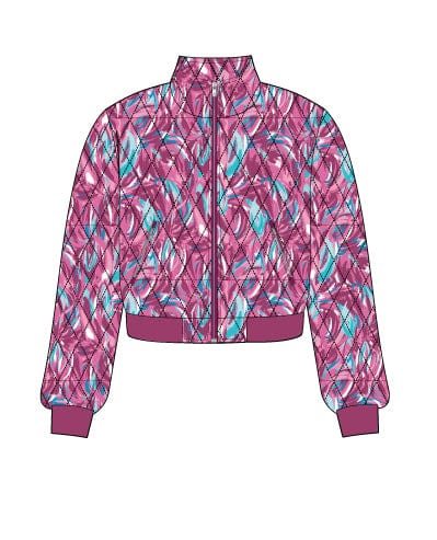 The Danni bomber jacket in lightweight quilted fabric is built to perform on the golf course with its windproof lining. It layers easily over any Amy Sport top or dress and pairs beautifully with our best-selling Marisa pleat-back skort, our new Aurora stretch faux-leather skort with 2-way zipper and built-in shorts or casual favorites like jeans, offering a polished athletic edge to your look. Complete with sporty color coordinated ribbed cuffs and waistband, and a silver zipper for a bold finish. Shown in Sunset Bloom.