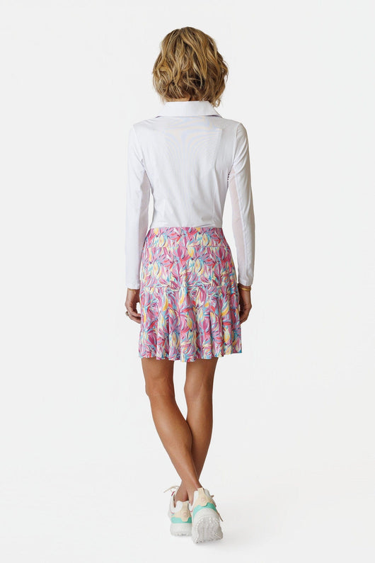 Lightweight yet durable, breathable, wrinkle-resistant, and UV-protective, it offers exceptional freedom of movement while keeping you swinging in style. The quarter-zip front adds a sporty edge, while the hem and sleeve lengths are precisely cut to flatter a petite or average height frame.